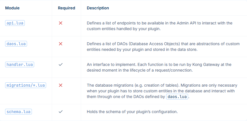 플러그인 적용을 위해서는 handler.lua, schema.lua 두 가지 필수 파일이 있다.