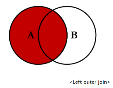 LEFT OUTER JOIN왼쪽에 있는 테이블의 모든 결과를 가져온 후오른쪽테이블의 데이터를 매칭하고, 매칭되는데이터가 없는 경우NULL을 표시한다.