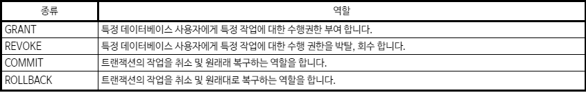 Data 제어어, DB에 접근하거나 객체에 권한을 주는 등의 역할을 하는 언어를 입니다.