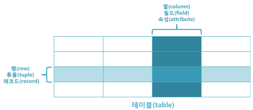 RDBMS에서 Data 관리 단위를 Table이라고 하며 Table은 metrics 구조(excel 시트 생각)이다.