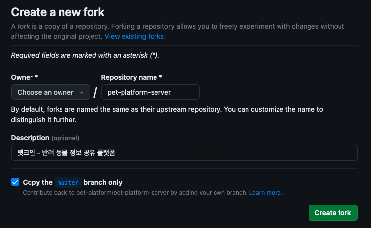 3. 원본 저장소(Pet-K-In) 이름과 URL 등록하기