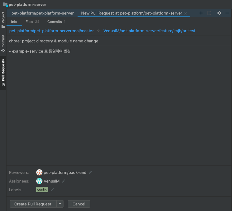수정한 소스 내용을 Pet-K-In repository에 반영을 희망할때 Pull Request이다.