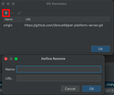2. + 클릭하여 원격지 등록창 띄우기