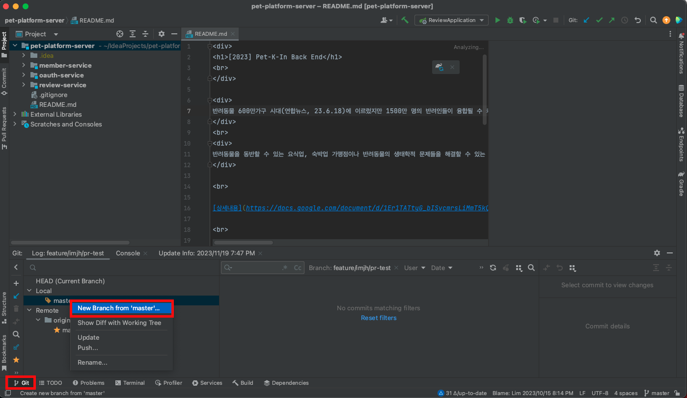 master 를 기준으로 새로운 브랜치 생성