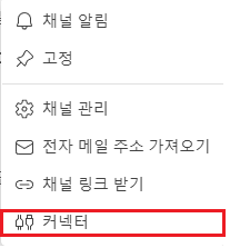 1. 알림을 보내고자 하는 채널에서 컨넥터 선택