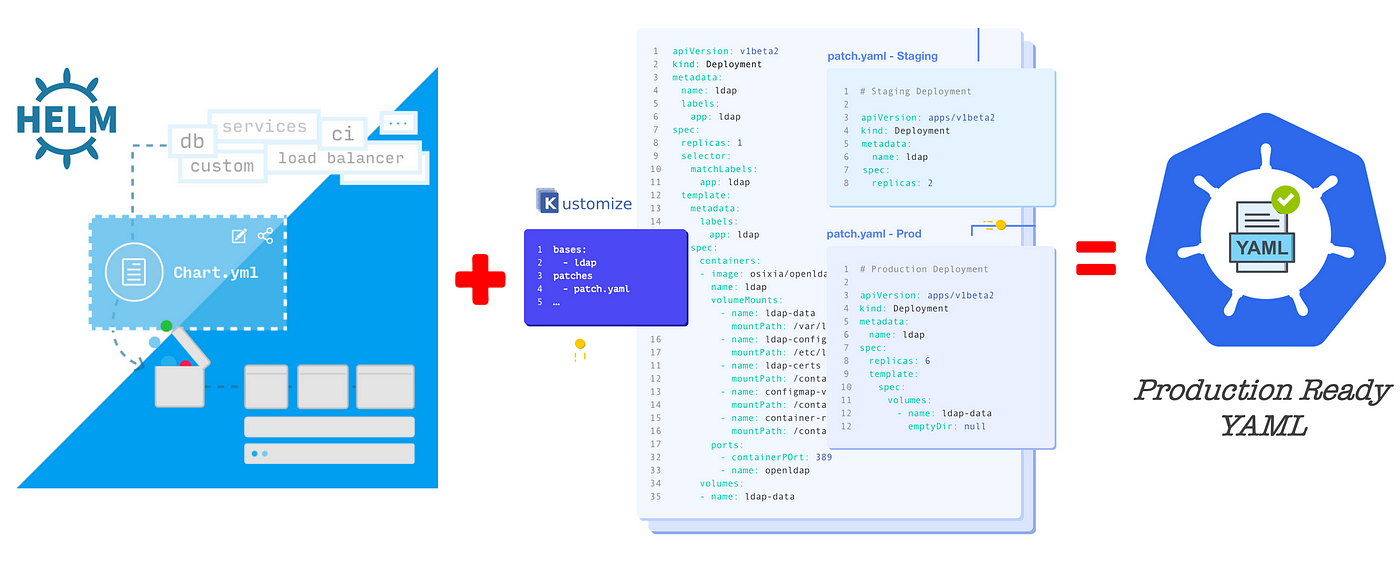 Helm은 템플릿 엔진이고 Kustomize는 오버레이 메커니즘을 따릅니다.
