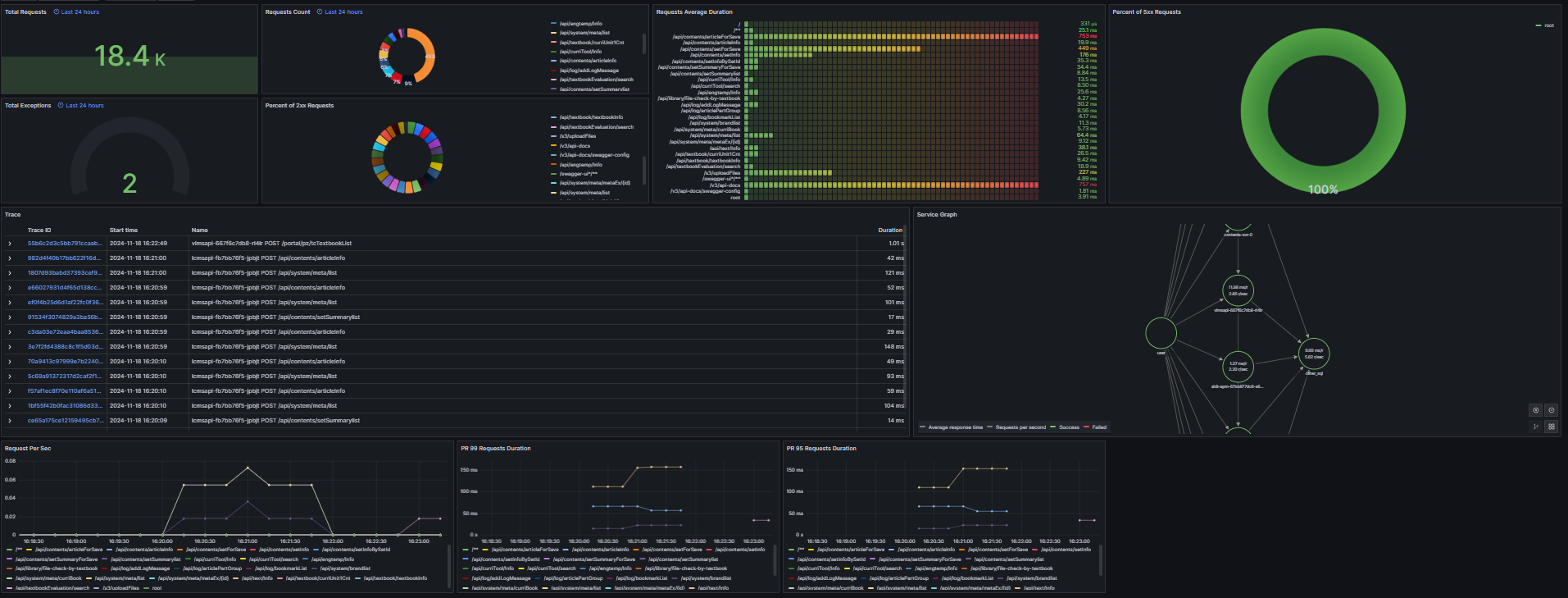 이를 통해 특정 요청의 흐름을 한눈에 확인할 수 있으며, 병목 지점을 쉽게 찾아낼 수 있습니다.