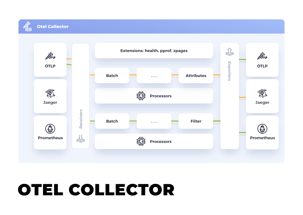 다양한 백엔드로의 데이터 전송 가능 (Jaeger, Prometheus, zipkin 등) |