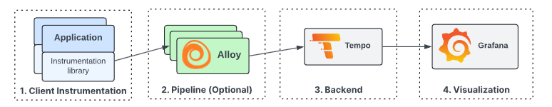 각 서비스 간의 호출 관계를 명확히 파악할 수 있어, 시스템의 복잡성을 관리하는 데 큰 도움이 됩니다. - Tempo는 이러한 트레이스를 수집하여 시각화합니다.