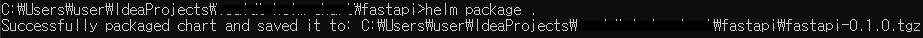 fastapi 디렉터리가 위치한 경로로 이동 후 helm package . 명령어 실행