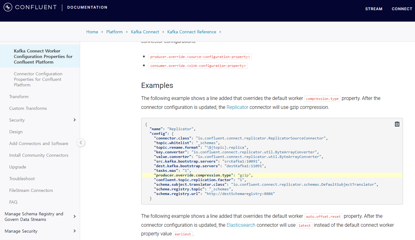 "producer.override.max.request.size":"2097152" 기본 값에 2배에 해당하는 값으로 설정하였습니다.