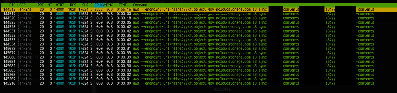 rclone copy {nas mount 경로}/workspace/cloud/sync-prod {rclone profile}:{bucket이름} --transfers 100 --checkers 100 --log-file=${filePath} --log-level INFO