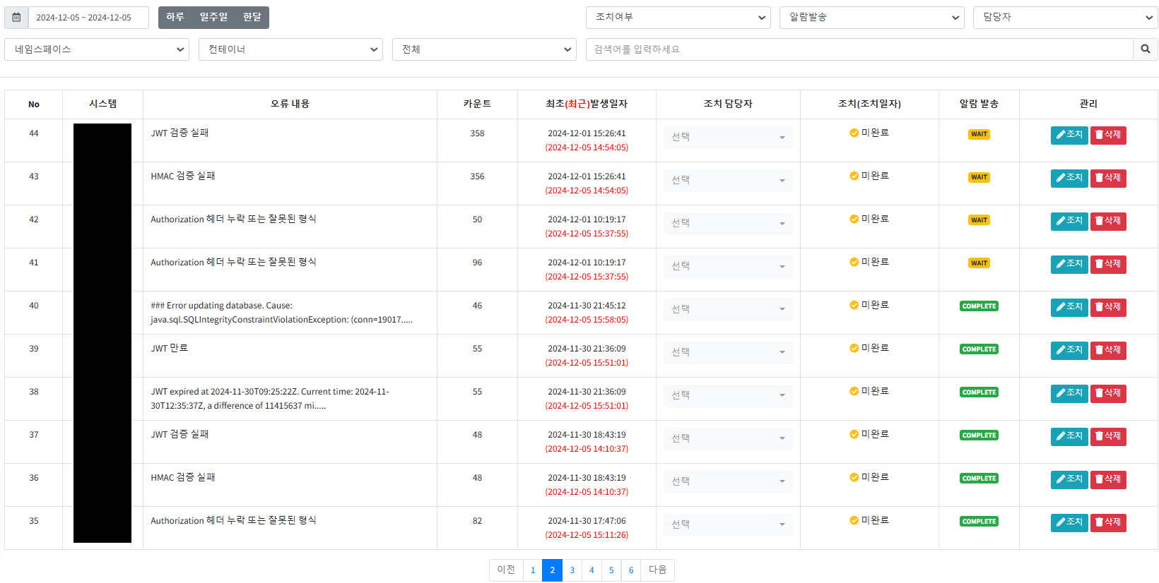 예외 및 오류에 대한 Error 레벨 로그를 stderr 와 stdout 으로 출력하면, Promtail이 이를 수집하여 Loki로 전달하고 로그를 관리합니다. 이후, 에러 로그 모니터링 기능을 통해 해당 에러를 관리하며, 알림을 발송하는 시스템이 구축하였습니다.