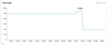 서비스 운영 중 Node Disk 사용량이 과도하다는 알림을 받게 되었고, 모니터링 시스템을 통해 디스크 점유율 지표를 확인하였다. 디스크 사용량이 93% > 31% 로 떨어진 것을 확인하였고, 약 62G가 확보된 것을 확인하게 되었다.