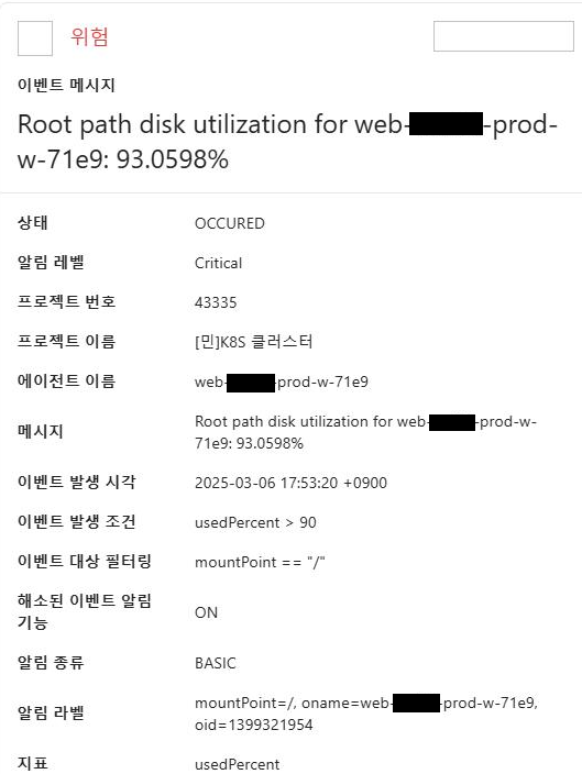 과도한 디스크 정리가 발생하였다고 판단하였고, 궁금증을 해소하기 위해 노드에 접근하여 확인을 진행하였고,